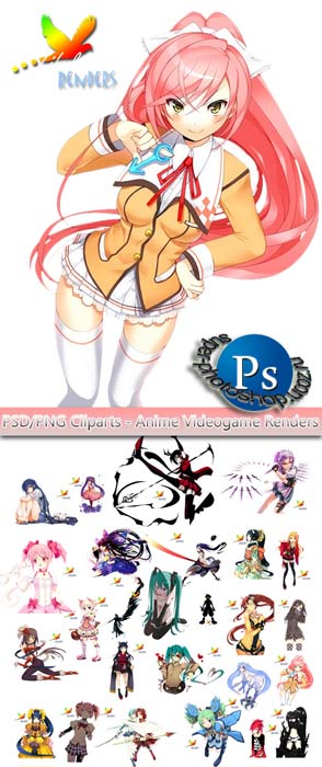 PSD PNG Cliparts - Anime Videogame Renders Количество файлов в архиве: 1 PSD & 26 PNG шт. Разрешение: 311x500/1658x1400, 300 dpi Формат: PSD/PNG, Размер: 62 Mb